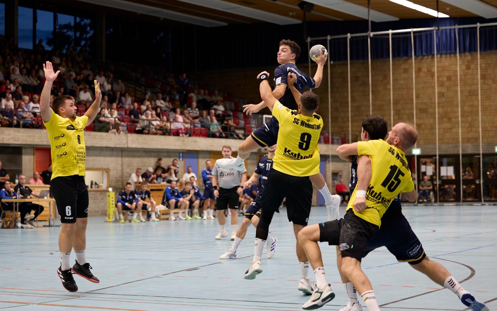 Eine gewisse Verunsicherung hatte Fröhlich nach der überraschenden 30:33-Pleite in Plochingen ausgemacht. Verzichten musste er auf Kreisläufer Jonas Waldenmaier sowie Linkshänder Patrick Watzl, der sich am Dienstag einer Meniskus-Operation unterziehen muss und länger auszufallen droht. Zudem gingen Spielmacher Tom Abt und Abwehrchef Christian Waibel angeschlagen in die Partie. Keine guten Vorzeichen, doch gegen den voller Euphorie angereisten Aufsteiger SG Weinstadt zeigten die „Jets“ eine starke Reaktion.