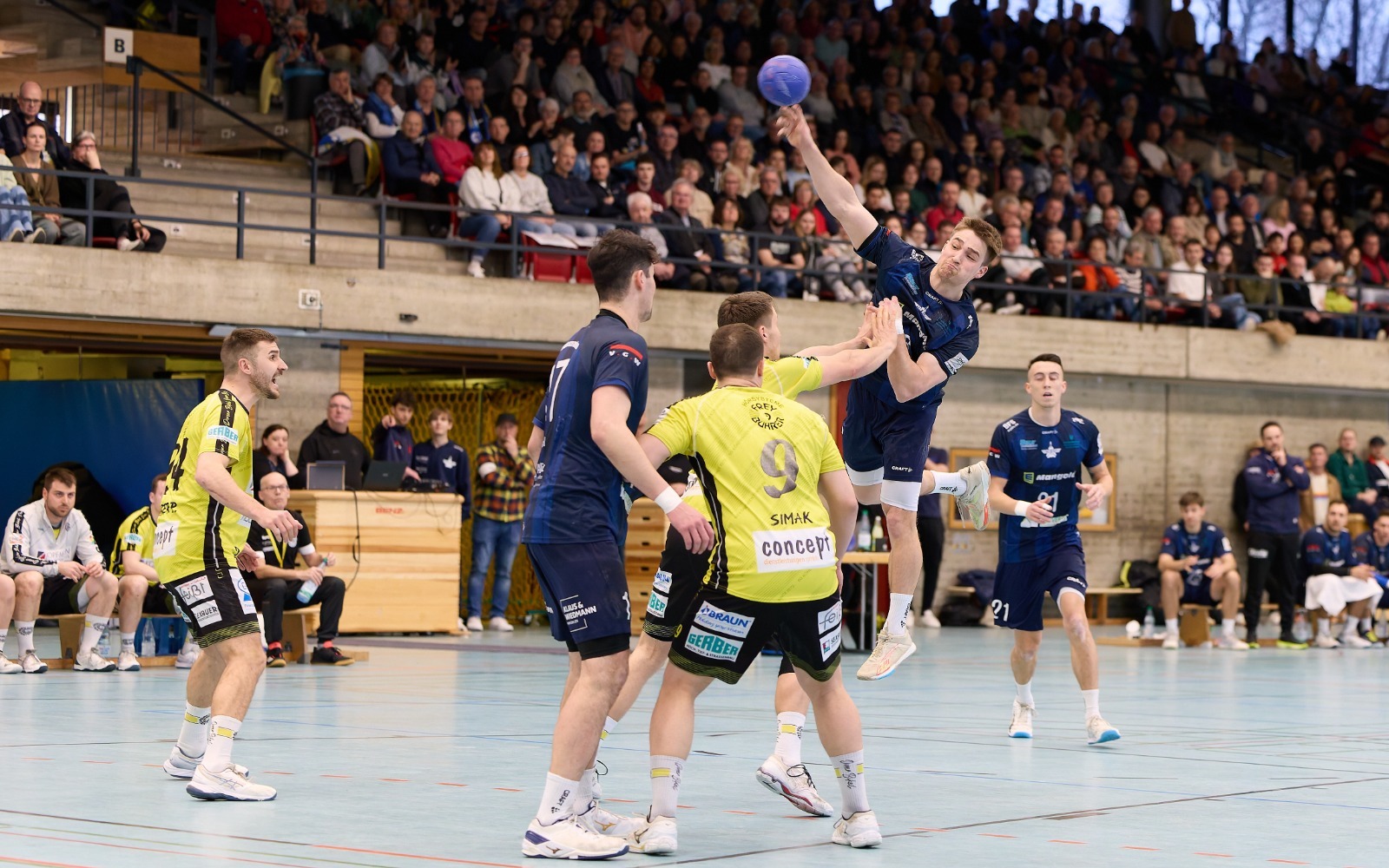 "Unsere erste Halbzeit war das Nonplusultra", fand Burtsche und ergänzte: "Die Halle ist zum Hexenkessel geworden, so wie wir es uns erhofft hatten." Mit ihrem beweglichen Offensivspiel holten die Gmünder immer wieder Zeitstrafen heraus, spielten ihre Angriffe geduldig und zielstrebig aus. Auf den Flügeln wurde Wolfgang Bächle immer wieder gut in Szene gesetzt und sein Pendant auf der linken Außenbahn hatte ohnehin einen Sahnetag erwischt. Burtsche traf auch in Hälfte zwei quasi nach Belieben. Bis zum 22:22 (38.) war es ein offener Schlagabtausch, der Verfolger TSB voll auf Augenhöhe mit dem Klassenprimus.