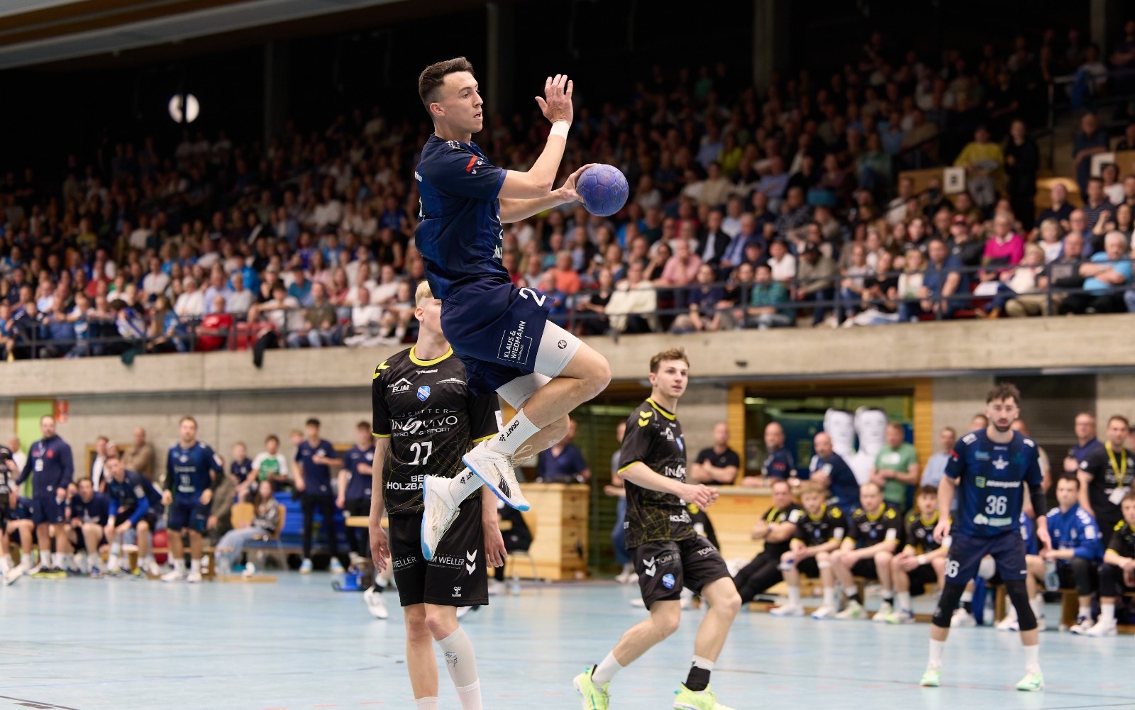 Die vollbesetzte Halle bebte, da der TSB die knappe Führung weiterhin behauptete, diese mit ein bisschen mehr Abschlussglück sogar hätte ausbauen können. Allerdings hatten auch die Gäste in Nick Lehmann einen Klasseakteur zwischen den Pfosten und so wendete sich das Blatt. Nach dem 14:12 (22.) verzweifelten die Gmünder acht Minuten lang an Lehmann und machten im Nervenkrimi nicht die beste Figur. Während TVB-Routinier Michael Seiz ganz cool zum 15:16 (30.) verwandelte, vergab Niklas Burtsche im Gegenzug schon seinen zweiten Strafwurf. Den besseren Start nach der Pause erwischte der TSB, doch auch Abt und Schäffner scheiterten im Siebenmeter-Duell an Lehmann.
