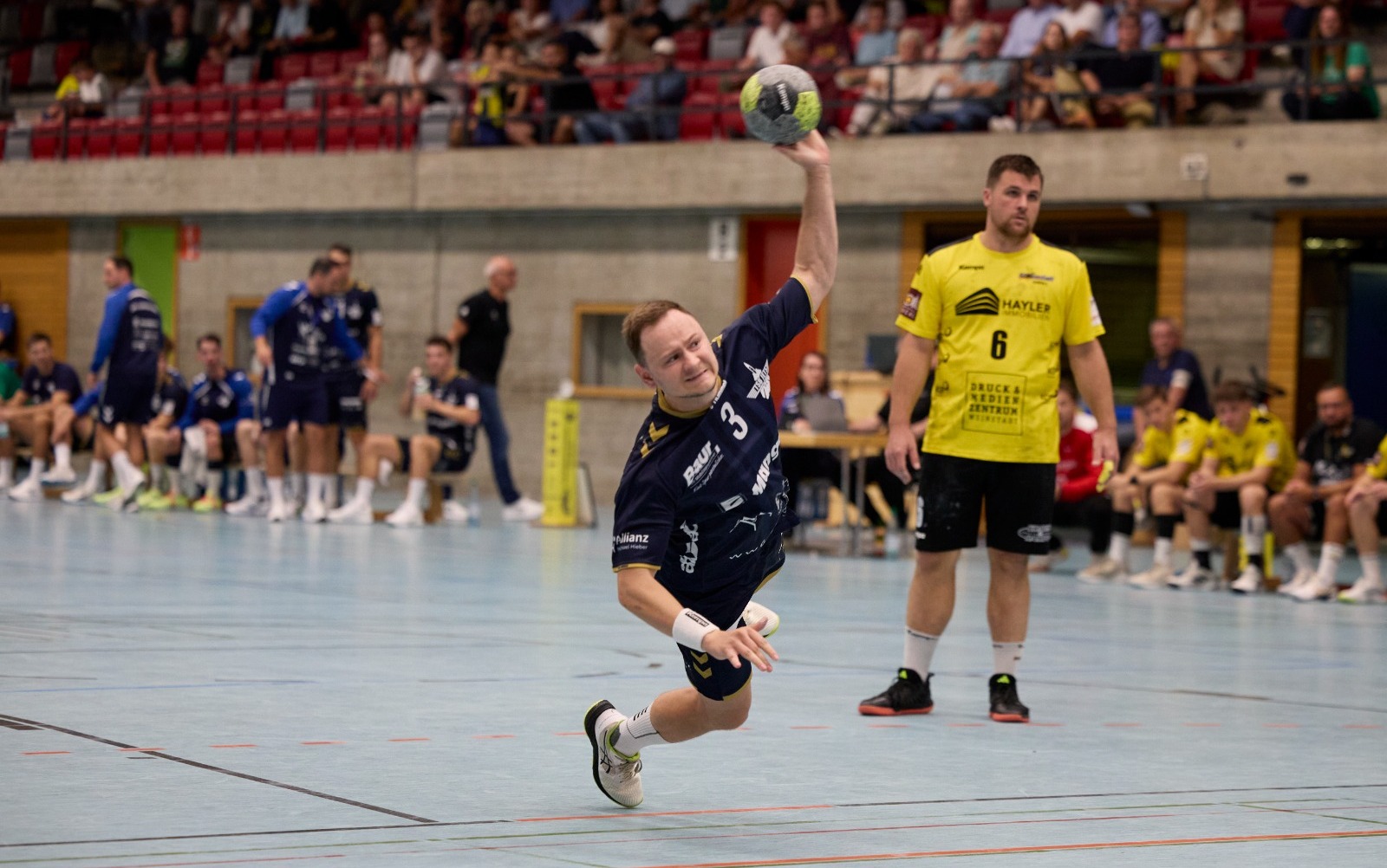 Eine gewisse Verunsicherung hatte Fröhlich nach der überraschenden 30:33-Pleite in Plochingen ausgemacht. Verzichten musste er auf Kreisläufer Jonas Waldenmaier sowie Linkshänder Patrick Watzl, der sich am Dienstag einer Meniskus-Operation unterziehen muss und länger auszufallen droht. Zudem gingen Spielmacher Tom Abt und Abwehrchef Christian Waibel angeschlagen in die Partie. Keine guten Vorzeichen, doch gegen den voller Euphorie angereisten Aufsteiger SG Weinstadt zeigten die „Jets“ eine starke Reaktion.