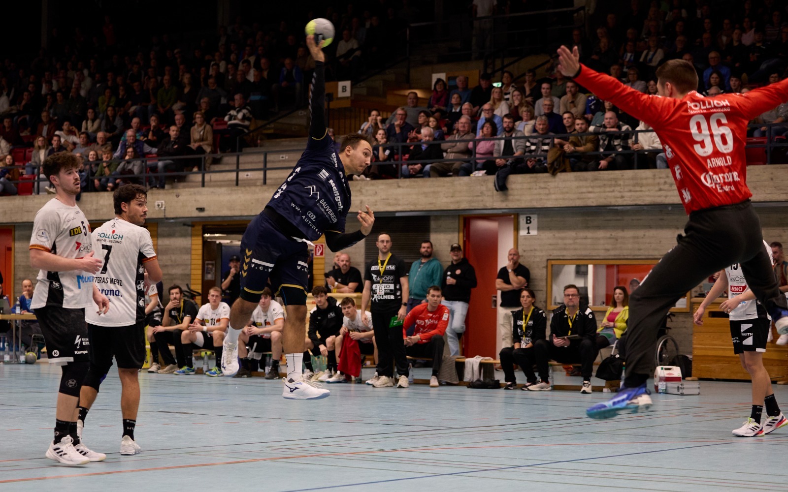 Starker Gegner, starke Kulisse – und ein noch stärkerer TSB Gmünd: Ihre Rückkehr in die eigene Halle nach sechs Wochen auf Reisen zelebrierten die Jets vor 750 Zuschauern ganz im Stile eines Spitzenteams. Das Kollektiv glänzte – und brauchte letztlich doch einen Mann, der alles entschied. Das war Spielmacher Tom Abt, der die letzten sieben Tore entweder selbst erzielte oder vorbereitete. „In diesen Szenen muss ich mir auch den Ball nehmen“, sagte der zehnfache Torschütze über die dramatische Schlussphase. „Doch ich bin auch froh darüber, das Vertrauen der Mannschaft zu spüren. Das würde ich auch nicht nur auf mich, sondern auf alle unsere Führungsspieler beziehen.“