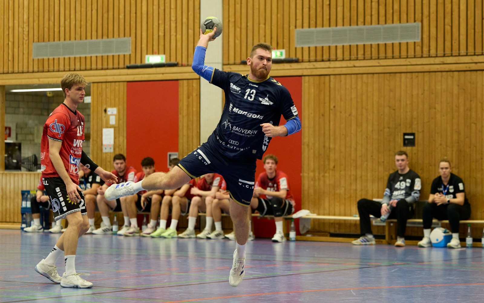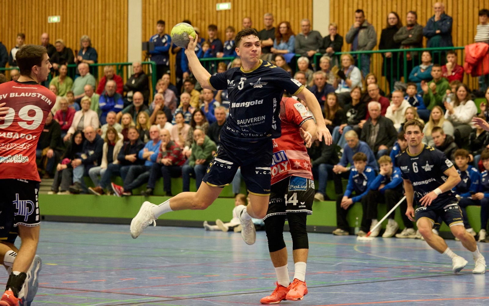 Eine Halbzeit lang tut sich der TSB Gmünd schwer, findet aber durch seine stabilisierte Abwehr zurück zu seinem Spiel und bezwingt das Regionalliga-Schlusslicht TSV Blaustein letztlich klar mit 34:23 (13:13). Zehn Tore von Linksaußen Niklas Burtsche und eine lautstarke Pausenansprache ebnen den Weg zum Pflichtsieg vor 500 Zuschauern in eigener Halle.