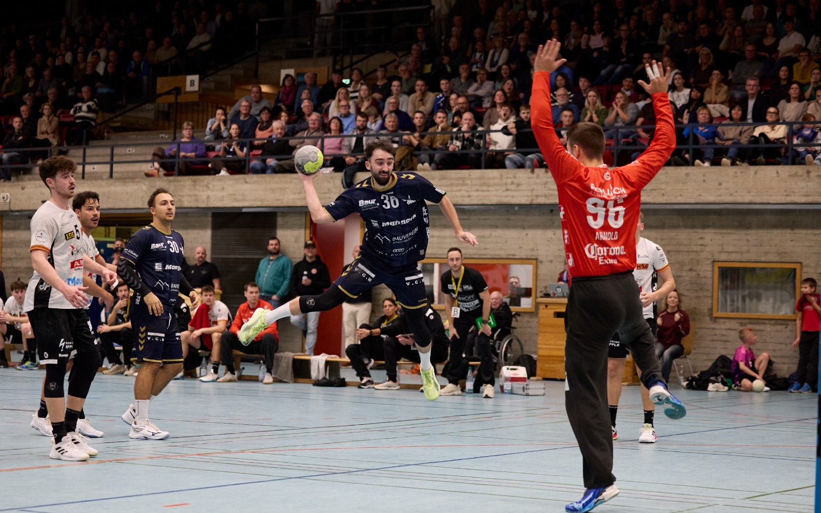 Was diese Gmünder Mannschaft auszeichnet und inzwischen zu einem echten Spitzenteam macht, ist die Überzeugung in den engen Momenten. Linkshänder Stefan Scholz antwortete mit einer starken Einzelaktion, wackelte seinen Gegenspieler aus und vollstreckte platziert zum 28:28 (59.). Baden-Baden rannte sich daraufhin in der Gmünder Abwehr fest, letztlich wurde dem achtfachen Torschützen Elias Dörflinger ein Schrittfehler abgepfiffen. Der coolste Gmünder antizipierte perfekt und traf: Aus dem eigenen Kreis schnappte sich Burtsche die Kugel und warf diese über die volle Felddistanz zum 29:28 (60.) ins leerstehende Tor ein.