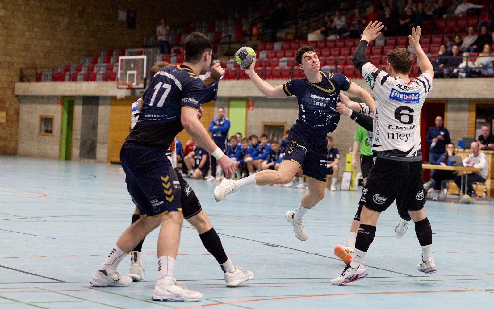 Die Kraftreserven und ein Wechsel zwischen den Torpfosten gaben den Ausschlag. Frisch von der Bank gekommen, kaufte Tobias Klemm dem besten HSG-Werfer Lasse Fuchs gleich zwei Versuche von Linksaußen auf. Leichs vergoldete dies und traf dann über die volle Felddistanz zum 29:26 (48.). Ein Polster, das Abt aufrecht erhielt, als er mit aller Macht in die Lücken der Albstädter Abwehr stieß und seine insgesamt neun Treffer erzielte. Dann war es wieder Klemm, der zunächst gegen Rechtsaußen Gregor Thomann den möglichen Anschlusstreffer verhinderte und in seiner nächsten Szene Spielmacher Julian Thomann verzweifeln ließ. Es waren die wichtigsten Paraden zur besten Zeit – garniert davon, dass es der nächste Distanzwurf durch Burtsche vom Pfosten hinein ins Netz spang. Es gab kein Halten mehr und Routinier Bächle setzte mit einem Dreher zum 38:34 den umjubelten Schlusspunkt.