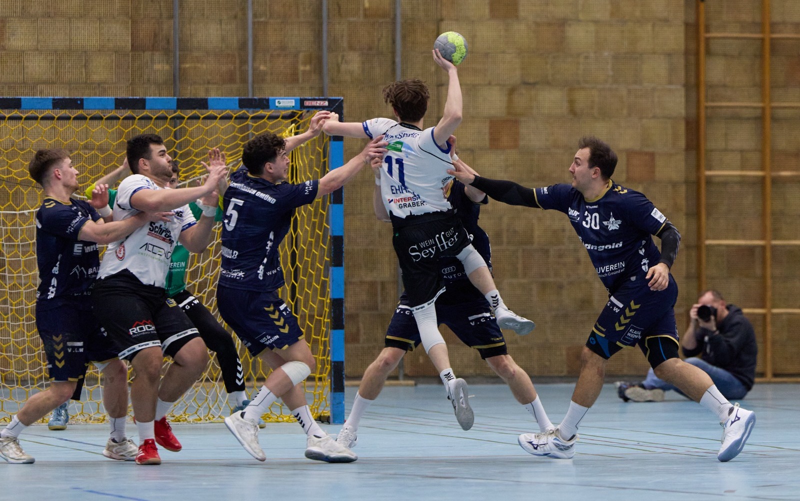 Auch eine erste Unterzahlsituation überstanden die Gmünder schadlos, sie waren den Gegnern stets den entscheidenden Schritt voraus. Der starke Yannik Leichs erobert erst selbst mit vollem Körpereinsatz die Kugel zurück, wuchtete diese dann aus dem Rückraum zum 4:1 (8.) ins gegnerische Netz. Spielmacher Tom Abt fand auch unter Bedrängnis die richtige Lösung, legte mit einem Rückhandpass auf Linksaußen Niklas Burtsche das 5:2 (8.) auf. Keeper Mühleisen sorgte mit einem Distanzwurf dann für das erste Fünf Tore-Polster und zeigte seine stärkste Parade, als er nach einem Gmünder Ballverlust gerade rechtzeitig von der Bank zurück aufs Feld rannte und den Konter des verblüfften Mathis Paulsen parierte. Bitter nur, dass Maier aufgrund eines Gesichtstreffers seine zweite Zeitstrafe kassierte und damit schon nach einer Viertelstunde rotgefährdet war.