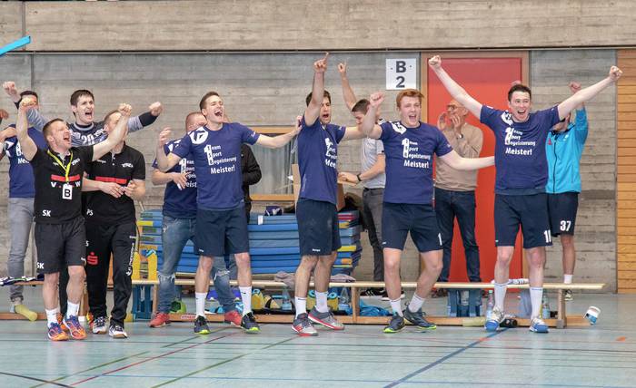 Lange bevor Wolfgang Bächle mit der Schlusssirene den 37:28-Endstand markierte, verteilten Michael und Andreas Hieber, das Trainergespann des Vorjahrs, die Aufstiegs-T-Sihrts: Betriebsunfall ist repariert, 4. Liga, wir kommen wieder.