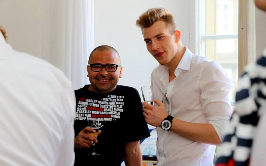 Saison 2013/14: Gemeinsam mit Hausmeister und Freund Peter Künstler (links) stößt Sos auf den Oberliga-Aufstieg an.