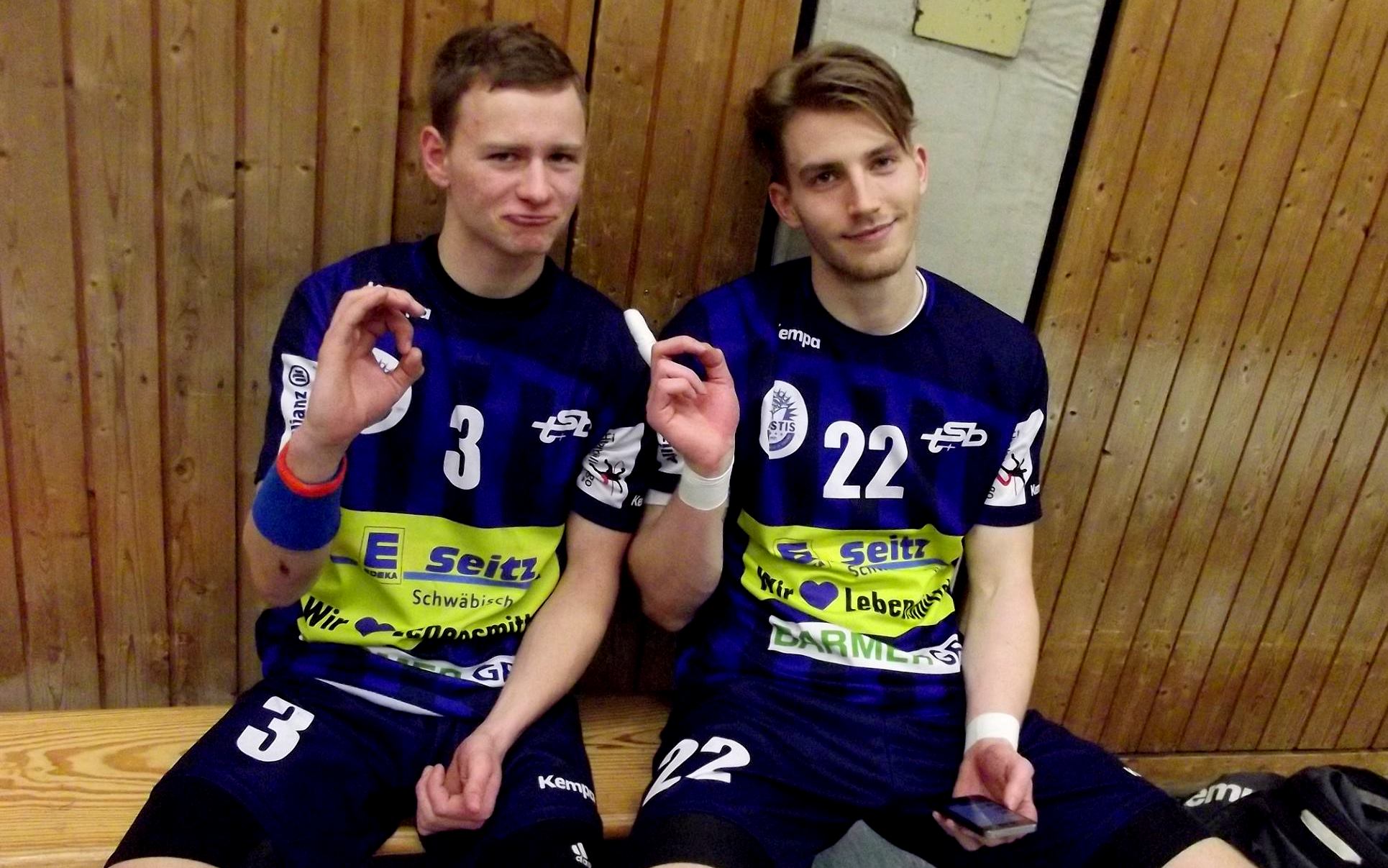 Saison 2014/15: Die beiden Youngster Wolfgang Bächle und Dominik Sos haben vor allem in eigener Halle oftmals Grund zum Jubeln. Neun Heimsiege sind der Grundstein zum Klassenerhalt.